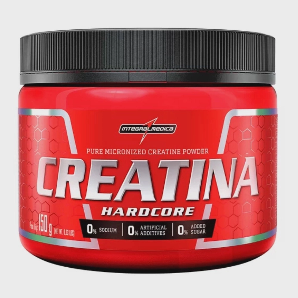 Creatina hardcore A Creatina da integralmédica é um suplemento alimentar voltado para o ganho de força e volume muscular de maneira gradativa. Já que não possui quantidades significativas de gorduras, sódio, fibras alimentares, carboidratos e proteínas. A creatina da integralmédica é pura, e quanto mais pura for a creatina, mais potente é sua ação no nosso organismo.A Creatina da Integral Médica é indicada para atletas e praticantes de atividades físicas que almejam aumentar a energia, força e qualidade muscular.A creatina é um suplemento alimentar muito utilizado por praticantes de esporte, é um suplemento que é estudado ao longo dos anos para poder ver os reais benefícios que ele propõe se usado corretamente.BENEFÍCIOSAumento de força Energia Volume muscular Creatina pura3g de creatina por porção Melhora na qualidade muscular Referência no mercado Sucesso de vendassugestão de uso Diluir uma porção de creatina da Integral Médica em um copo de uma bebida de sua preferência em qualquer horário do dia ou conforme orientação profissional.ADVERTÊNCIAConsulte um médico antes de usar esse produto se você estiver ou suspeitar de uma condição médica, estiver tomando medicamentos sujeitos a receita médica ou estiver grávida ou amamentando.Código de barras 7896311763498Marca Integralmédica Açucar Não Como Conservar Conservar em temperatura ambiente, longe de lugares quentes e umidos.Como Tomar Diluir uma porção de creatina da Integral Médica em um copo de uma bebida de sua preferência em qualquer horário do dia ou conforme orientação profissional.Fabricante Integralmédica Gluten Não Lactose Não Objetivo do Produto Ganho de Massa Muscular Sabor Neutro Tamanho 150g Tipo de Produto Creatina 100% Pura Validade Superior a 1 ano Crossdocking 0