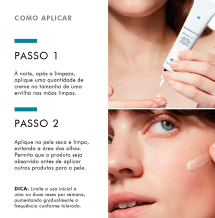Aplique o creme sobre a pele limpa antes de dormir, espalhando suavemente até completa absorção. Utilize todas as noites para melhor experiência de uso.
