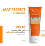 O Protetor Solar Facial Avène Mat Perfect FPS 70 Fluido Clareador Claro 40g foi desenvolvido para oferecer alta proteção aliada a um acabamento leve e uniforme. Sua textura fluida espalha facilmente e seca rápido, deixando a pele com toque seco e sensação confortável ao longo do dia. A tonalidade clara ajuda a uniformizar o tom da pele, enquanto os agentes iluminadores contribuem para reduzir o aspecto de manchas e promover aparência mais homogênea. Além disso, o produto auxilia no controle do brilho, sendo uma opção interessante para quem busca proteção diária com efeito matificante e cobertura suave.