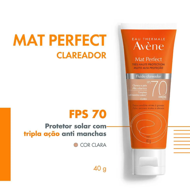 Protetor Solar Facial Avène Mat Perfect FPS 70 Fluido Clareador Claro 40g